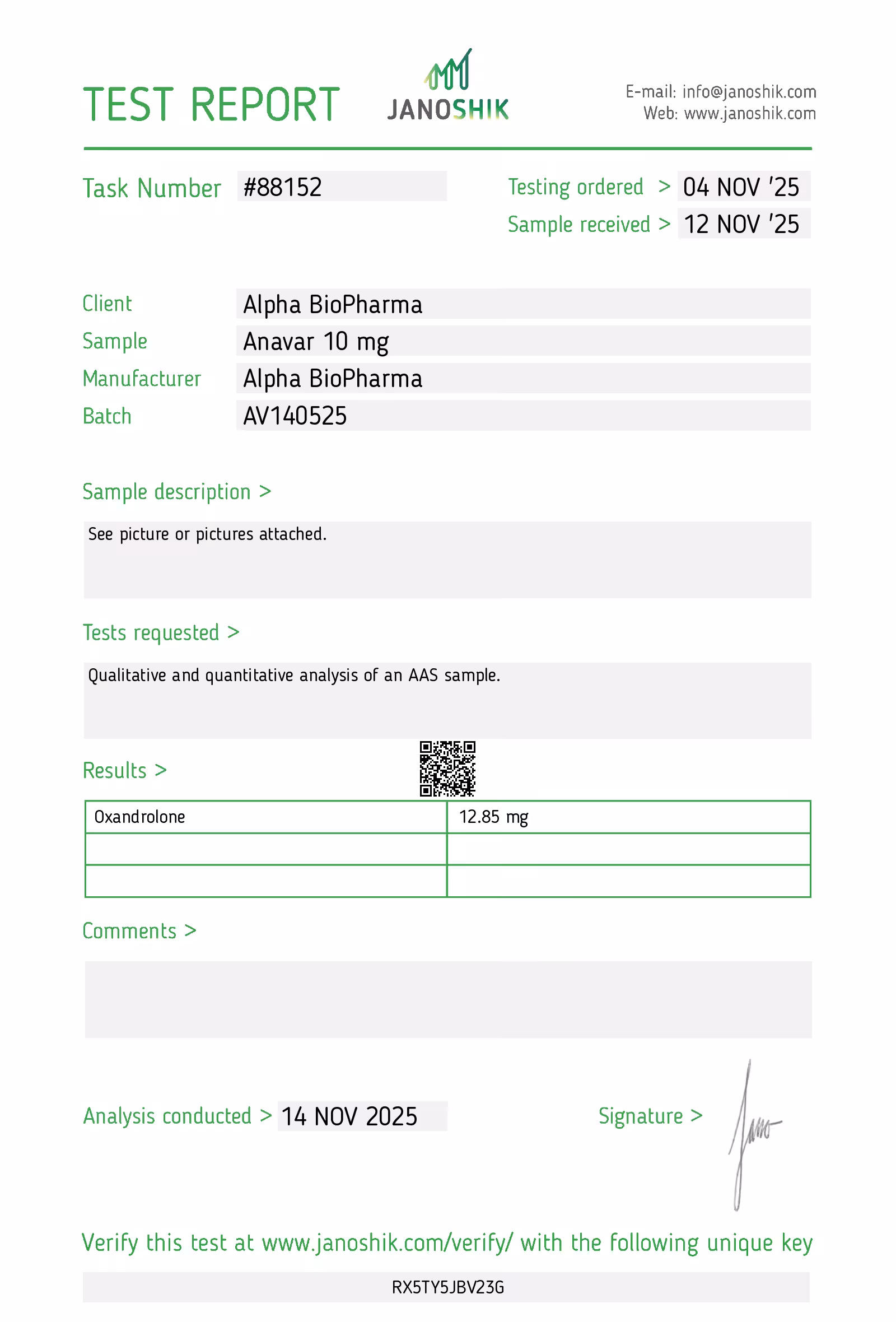 Klik HIER voor de recenste labotest van de Alpha BioPharma Anavar